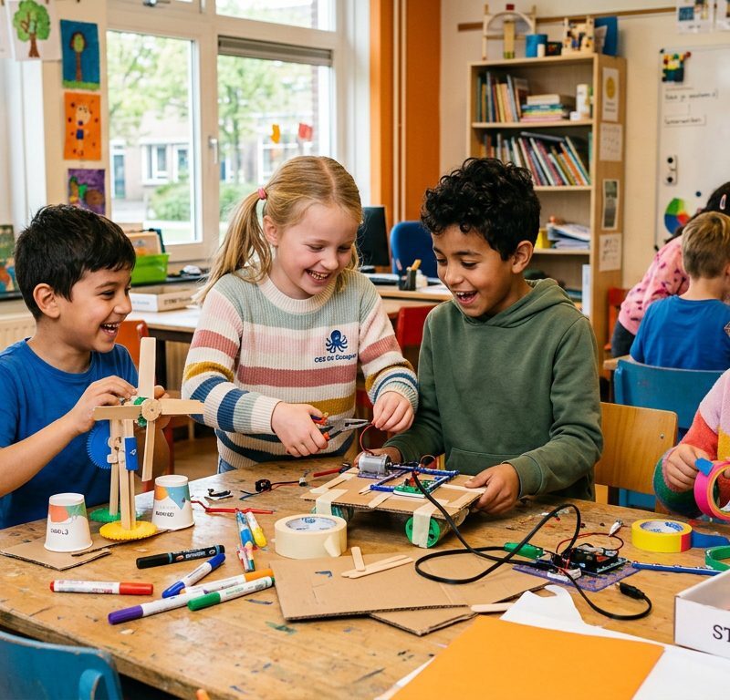 Naast de kernvakken besteden we veel aandacht aan brede ontwikkeling. In onze lessen "Onderwijs Anders" werken leerlingen wekelijks aan techniek, programmeren, creativiteit en samenwerken in circuitvorm. Daarnaast biedt "Ontdek! Brede School Zoetermeer" vier keer per jaar activiteiten aan in kunst en cultuur, sport en spel, natuur en milieu, techniek en wetenschap, en creativiteit.